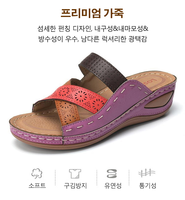 프리미엄 가죽 재질, 시원하고 우아한 펀칭 디자인, 폭신폭신한 밑창으로 안정된 착화감과 함께 발에 무리없이 장시간 착용 가능