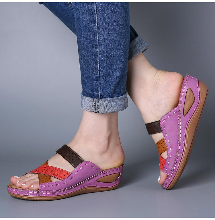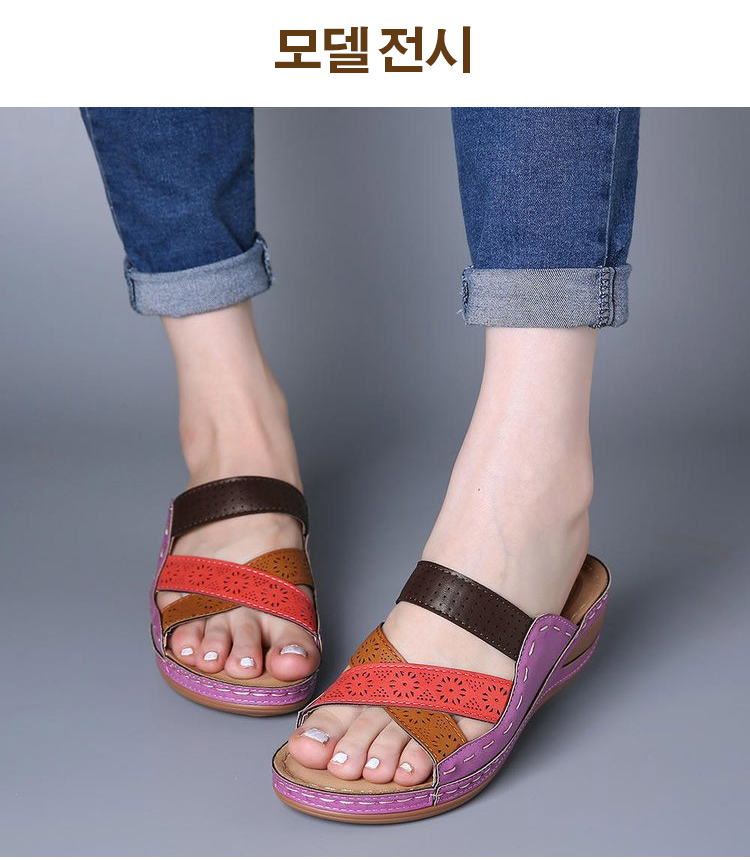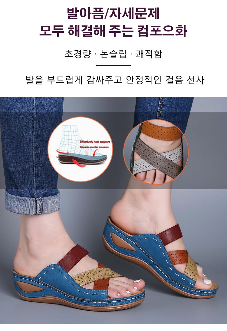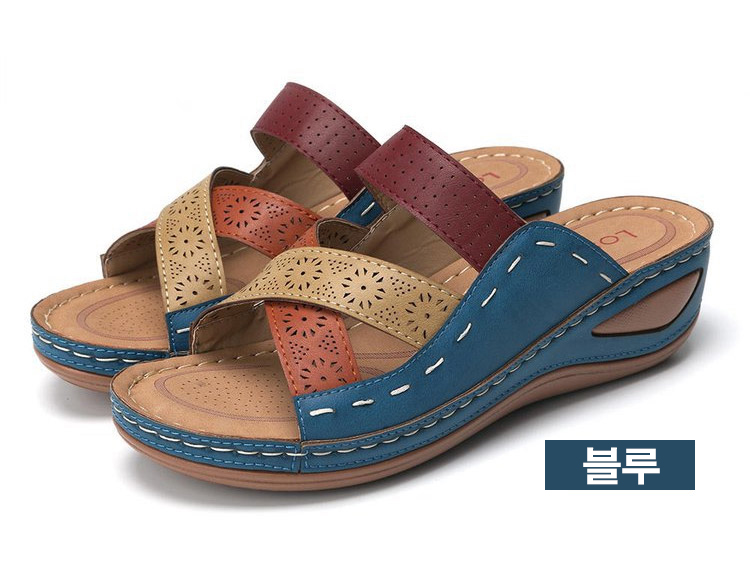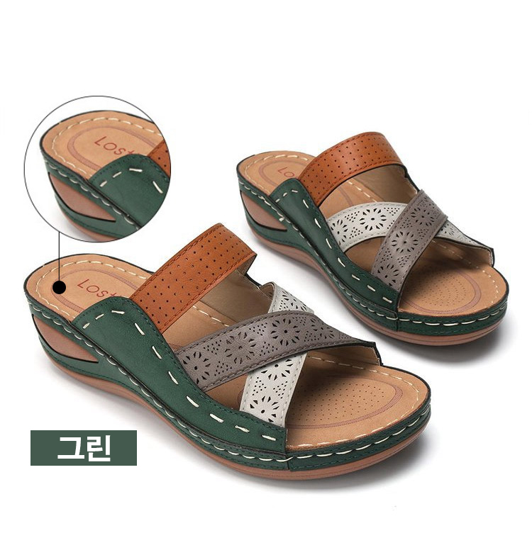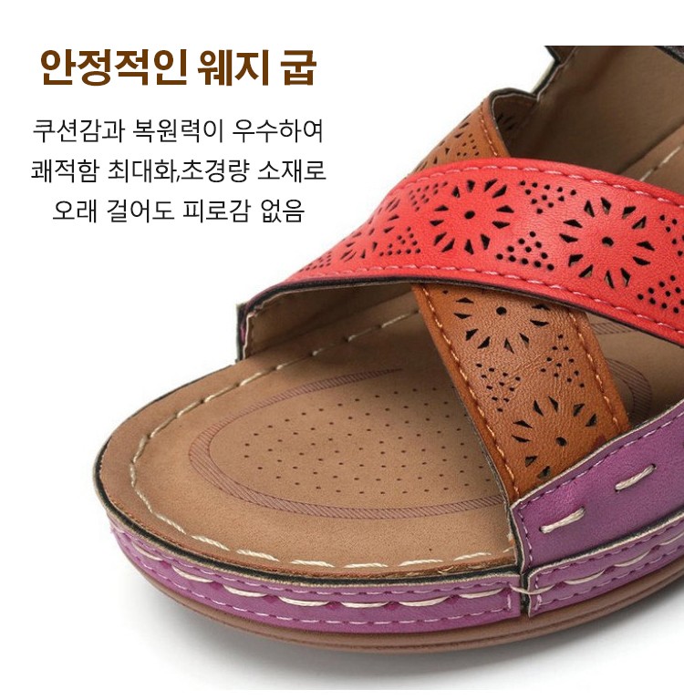 여성 가죽 웨지 컴포트 샌들
