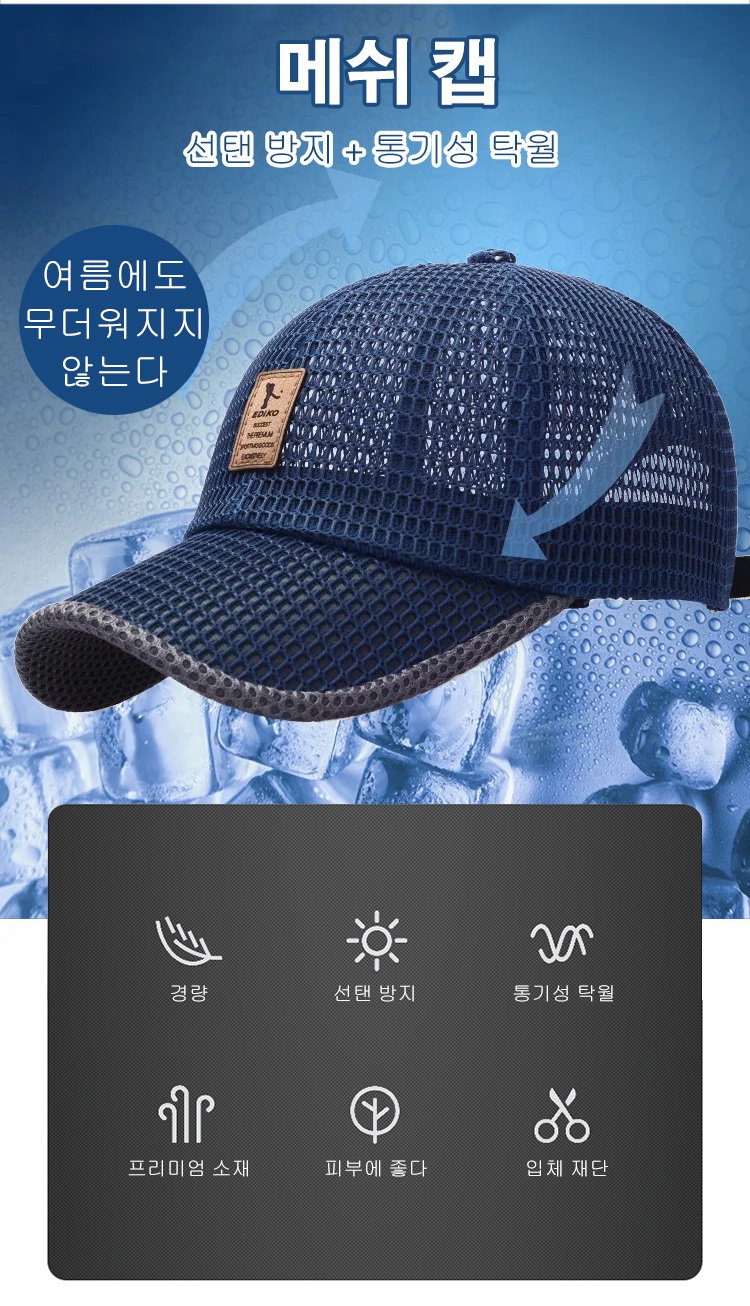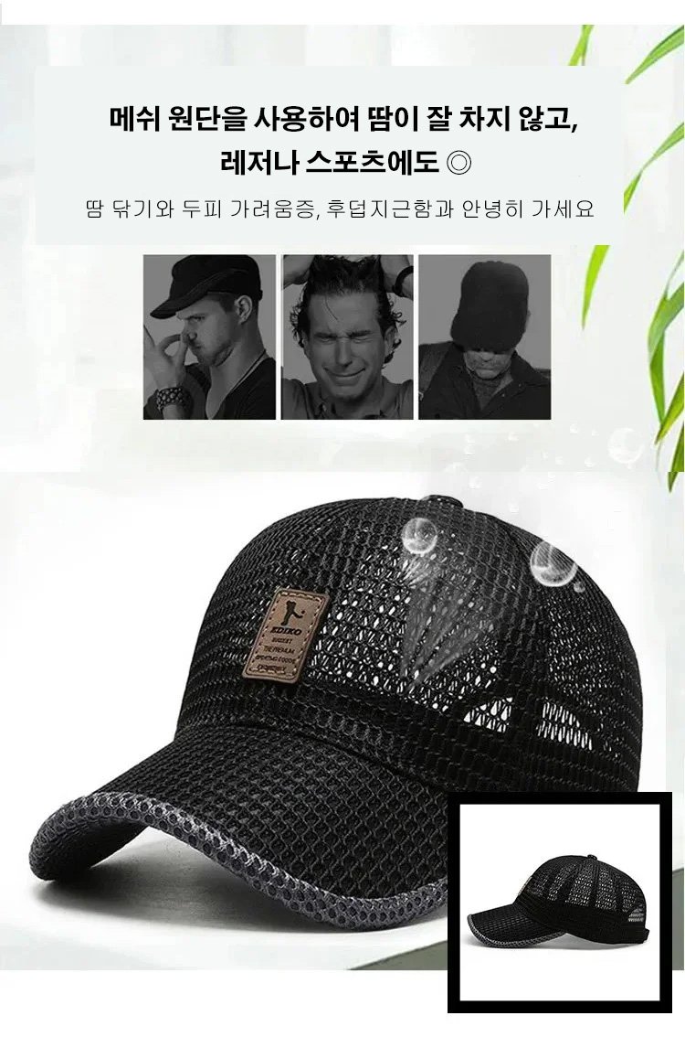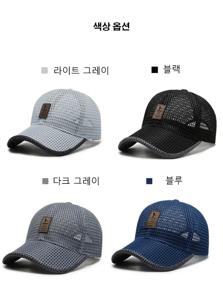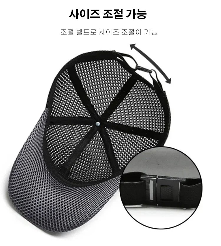 메쉬 캡, 메쉬 디자인, 통기성 탁월,입체 모자챙, 전면적으로 자외선 차단! 사이즈 조절 가능